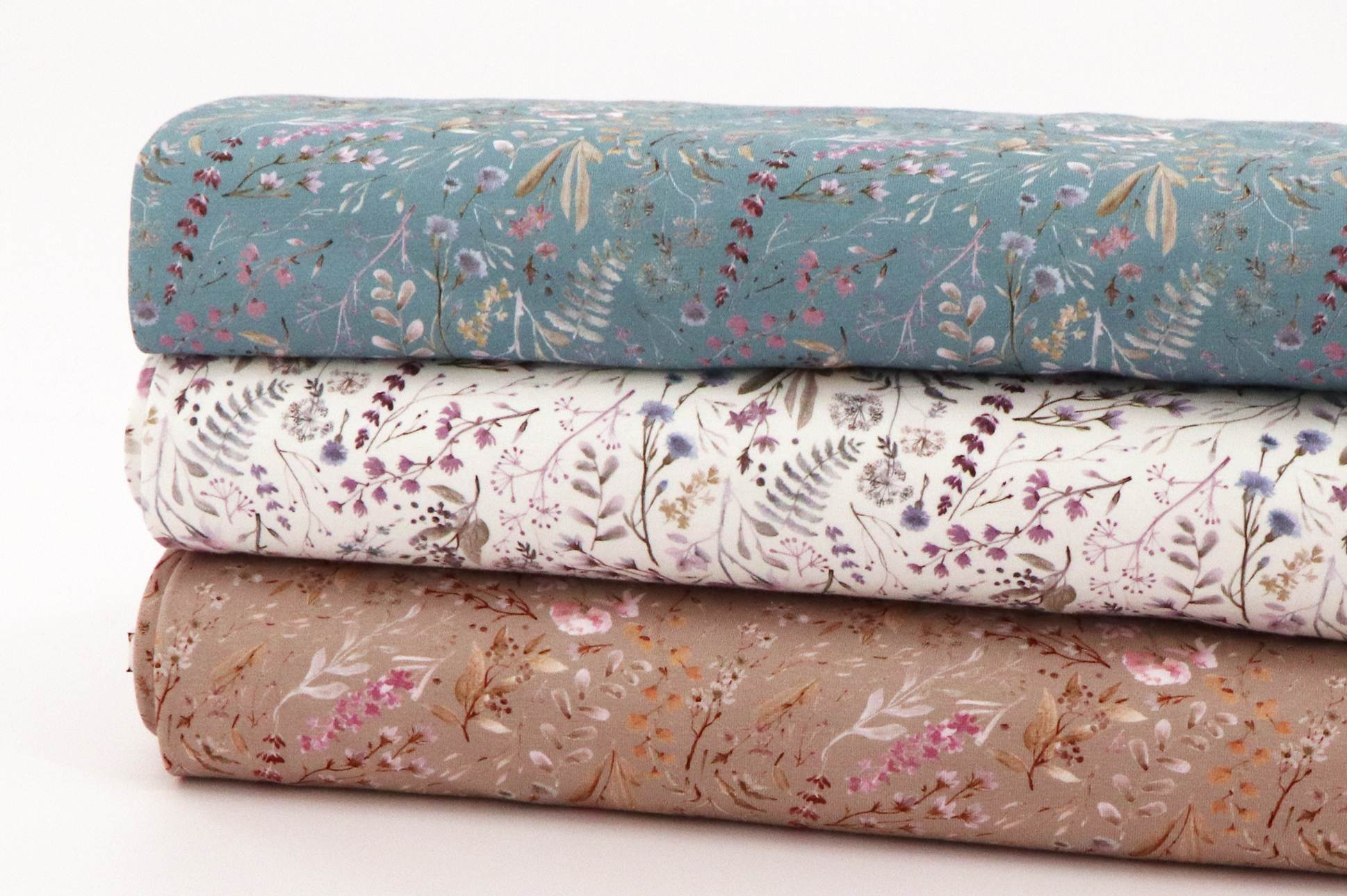 Info sui prodotti "Jersey di cotone, fiori di prato ed erbe su sabbia"